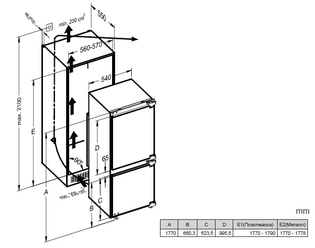 საყინულე კამერის მოცულობა (ბრუტო): 181 ლ